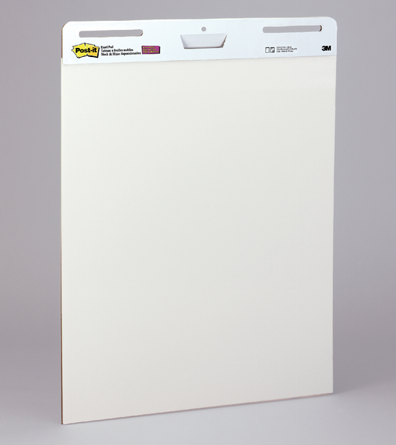 * Post-it® Zelfklevende Super Sticky Meeting Charts zijn effen witte flipovers ontwikkeld voor vergaderingen en presentaties. Dankzij de zelfklevende rug kleven de vellen stevig aan de meeste verticale oppervlakken en laten geen sporen achter bij verwijderen of verplaatsen. Denk, schrijf en houd je werk zichtbaar. Het hoogwaardige papier is bestand tegen doorlekken en de grafieken zijn voorzien van universele sleuven die passen op de meeste ezels of flipcharts. Ze kunnen ook aan een muur worden gehangen met Post-it®Super Sticky Wall Easel. * Post-it® Meeting Charts zijn perfect om mee te brainstormen, problemen op te lossen en presentaties te geven. Denk, schrijf en houd al uw ideeën zichtbaar. * De zelfklevende vellen plakken keer op keer op de meeste oppervlakken, blijven tot 2x langer plakken en kunnen worden verplaatst zonder schade aan het oppervlak. Tape of punaises zijn niet nodig, zoals bij standaard flipovervellen. * De stevige achterzijde is voorzien van een handgreep voor makkelijk meenemen en heeft universele sleuven om te passen op de meeste ezels. * Effen wit papier van hoge kwaliteit dat bestand is tegen het doordrukken van markers. * Stop met het urenlang overschrijven van notities na een brainstormsessie; download de gratis Post-it® App. Je kunt je notities nu direct vastleggen en opslaan, zodat je ze snel met je team kunt delen zonder dat je eerst een verslag hoeft te maken. * 30 vellen per blok, elk vel meet 63,5 x 76,2 cm