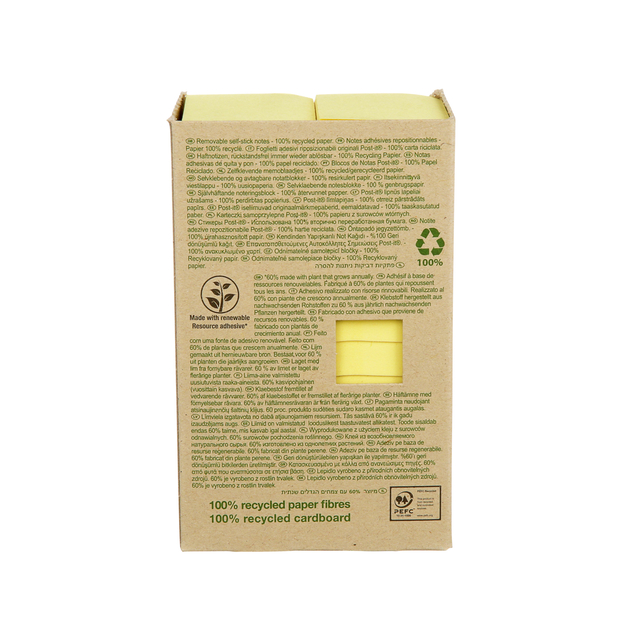 Eigenschappen "Memoblok Post-it 653 38x51mm recycled geel 24 stuks"