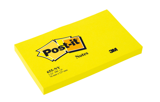 Eigenschappen "Memoblok Post-it 655 76x127mm 100 vel per blok neon geel"