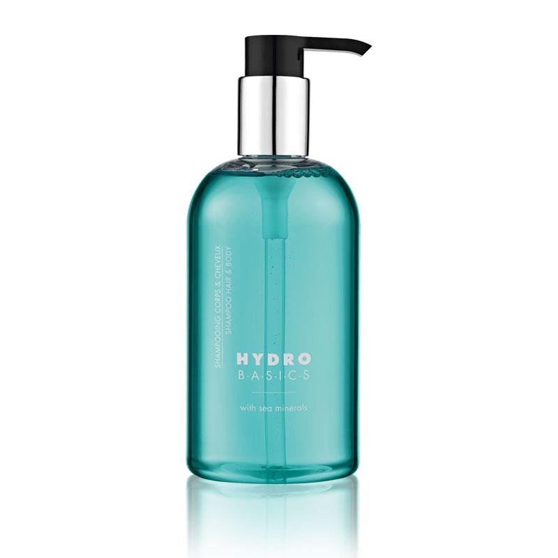 De HYDRO Basics Hotel Collection combineert de energie frisheid en natuurlijke eigenschappen van zuiver water. HYDRO Basics bevat essenties van citroen bergamot en sinaasappel gecombineerd met bloemige noten van jasmijn en een vleugje patchouli en cederhout. De unieke aromatische formulering is ontworpen om een ??verfrissende douche- en badervaring te bieden en lichaam en geest te stimuleren als een zachte zeebries. Actieve ingredienten van zeemineralen en algenextracten voorzien de huid van een dosis extra vocht. 100Proc recyclebare verpakking. Biologisch afbreekbare formulering. Uniek flesontwerp