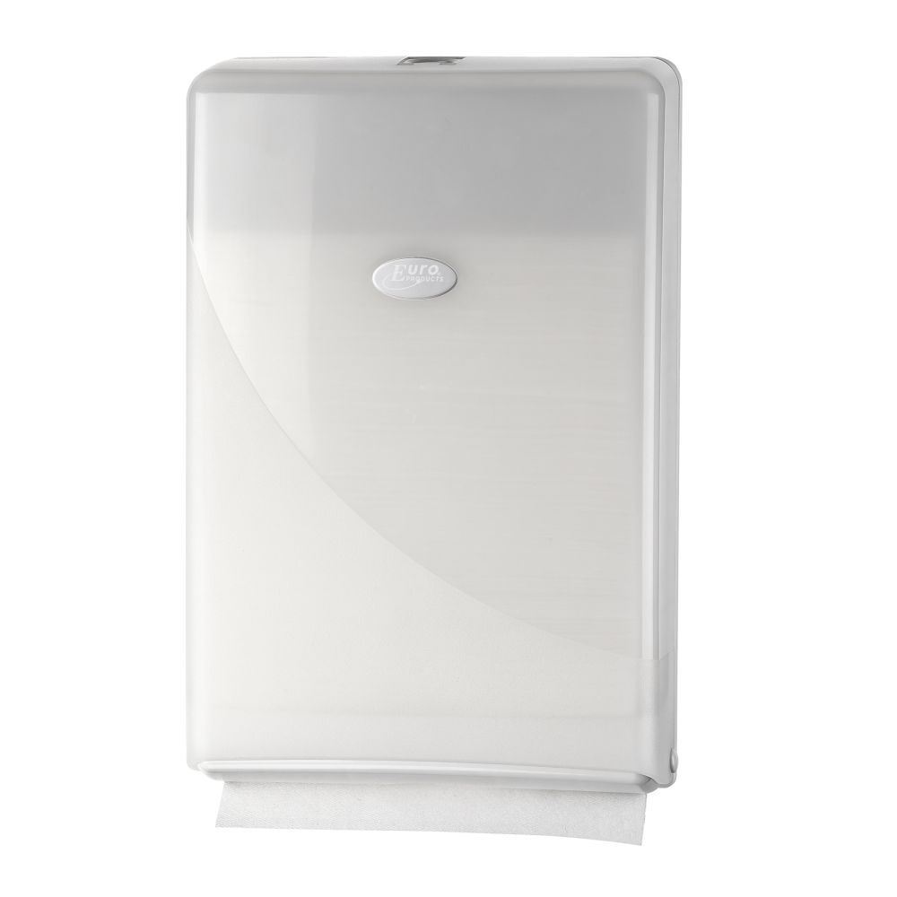 Deze handdoekrolautomaat is zeer geschikt voor drukbezochte sanitaire ruimten. Door de vel-voor-vel dosering is dit een verbruiks- en kostenbesparend systeem. Zeer hygienisch doordat de gebruiker alleen maar contact heeft met de handdoek welke gebruiksklaar uit de automaat hangt. Geen kans op kruisbesmetting. Instelbaar vertragingssysteem en vellengte papier vooraf in te stellen. Eenvoudig en snel te verwisselen Vel-voor-vel uitgifte zuinig in gebruik Automatische papierdoorvoer Instelbare vellengte papieruitgifte Hygienisch Hoge capaciteit verbruiks- en kostenbesparend Univesele sleutel afsluitbaar aan twee zijden Afmeting 375 x 340 x 240 mm Materiaal: Kunststof Kleur: Wit Afwerking: Semi Transparant