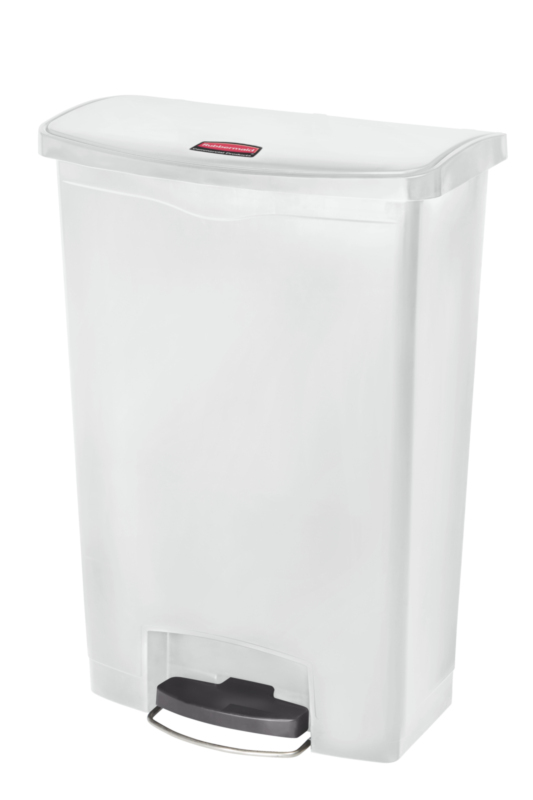De Step On-containers maken maximaal gebruik van de beschikbare ruimte dankzij een slank discreet ontwerp. Past perfect strak tegen de muur. De polyethyleen container is voorzien van een geruisloos sluitend deksel en zakhouder. Het pedaal van industriele kwaliteit garandeert een lange levensduur. Verrijdbaar d.m.v. twee kunststof wielen aan de achterzijde.
