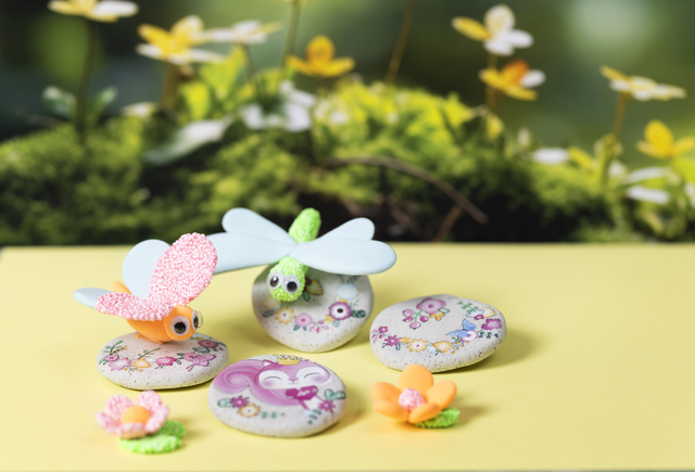 Met onze Creativity in a Box kunnen kinderen hun eigen unieke steen vormen, die ze vervolgens kunnen decoreren met stickers en insecten. De set bevat alle materialen en instructies die u nodig hebt. Groot, klein, rond of plat – nu kunt u met de kinderen zelf stenen in elke gewenste vorm maken. Gebruik gewoon de meegeleverde Stone Clay – een boetseerklei met echt steenpoeder. Die is heel eenvoudig te gebruiken en creëert een cool steeneffect. Als de stenen zijn uitgehard, versiert u ze met kleurrijke stickers en schattige vormpjes van Foam Clay® en Silk Clay®. Vorm bijvoorbeeld uw eigen vlinders, libellen of fantasie-insecten en zet ze op de rand van elke steen. Dat levert de mooiste decoratieve stenen voor de kinderkamer op..