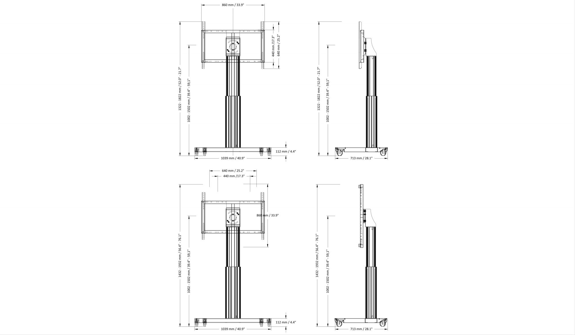 Mobiele, elektrisch in hoogte verstelbare digital signage monitorstandaard