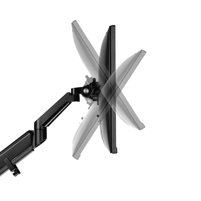 * De DS70-810BL2 is een full motion monitorarm voor 2 schermen tot 32" met een maximaal draagvermogen van 9 kg per scherm. * Dankzij de veelzijdige kantel- (90º), roteer- ( 360º) en zwenktechnologie ( 180º) kan de monitorarm aangepast worden naar iedere gewenste kijkhoek en kan er optimaal geprofiteerd worden van het scherm. * De monitorarm beschikt bovendien over een gasgeveerde hoogte- en diepteverstelling om zo de perfecte werkpositite te creëren. Door op de juiste positie te werken verminder je spanning in ogen, nek en schouders. * Met de slimme kabelmanagementclips wordt er gezorgd voor een overzichtelijke geleiding van de kabels. * De DS70-810BL2 is geschikt voor schermen met een VESA gatenpatroon van 75 x 75 of 100 x 100mm.