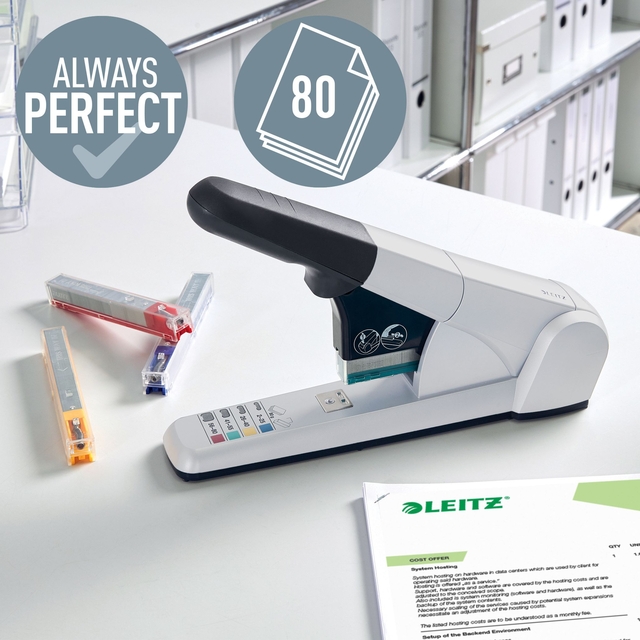 Leitz is een zeer bekend topmerk in de wereld van kantoorartikelen. Met producten van Leitz kun je je documenten organiseren. Mappen, nietjes,ordners, ringbanden, nietmachines, perforatoren, brievenbakjes enzovoorts.