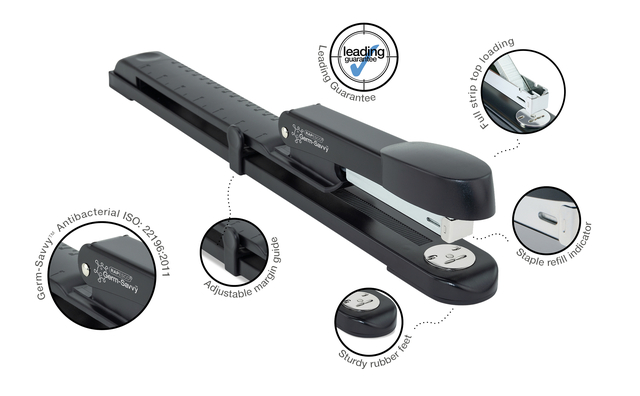 Nietmachine Rapesco Germ-Savvy Long Arm Marlin antibacterieel zwart