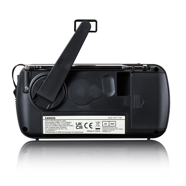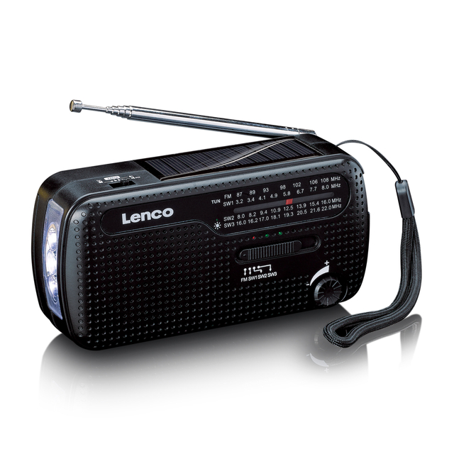* Deze MCR-113BK noodradio van Lenco is een alles-in-één draagbare radio met meerdere praktische functies. De radio kan namelijk ook gebruikt worden als zaklamp of powerbank. Het grootste voordeel van deze radio is dat er geen stopcontact in de buurt hoeft te zijn en dat je geen batterijen nodig hebt. Je kunt namelijk de benodigde stroom zelf genereren door de handslinger te gebruiken of het zonnepaneel bovenop de radio om hem op te laden. Mocht er toch stroom in de buurt zijn, dan is het ook mogelijk om de Lenco MCR-113BK op te laden met een USB-C kabel.