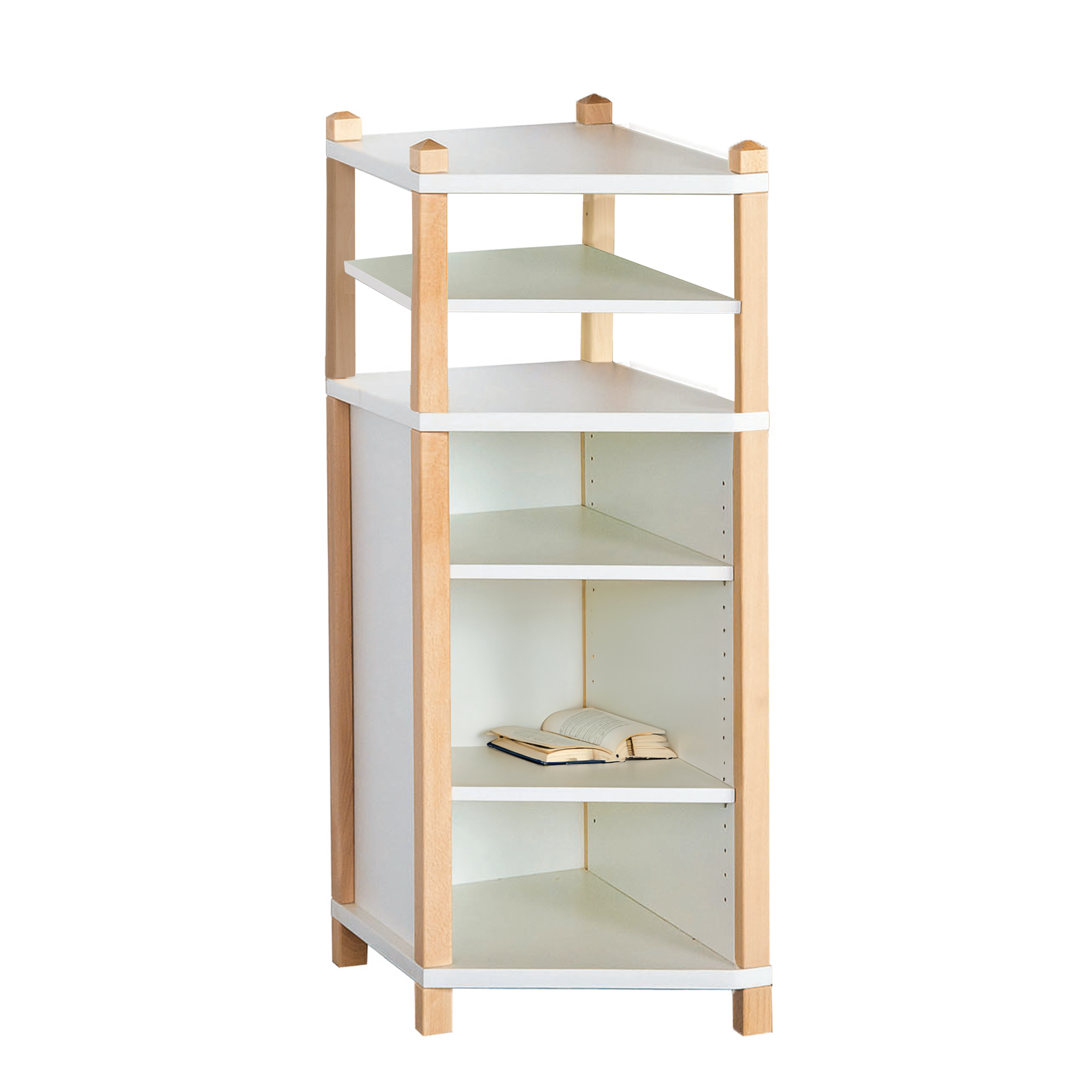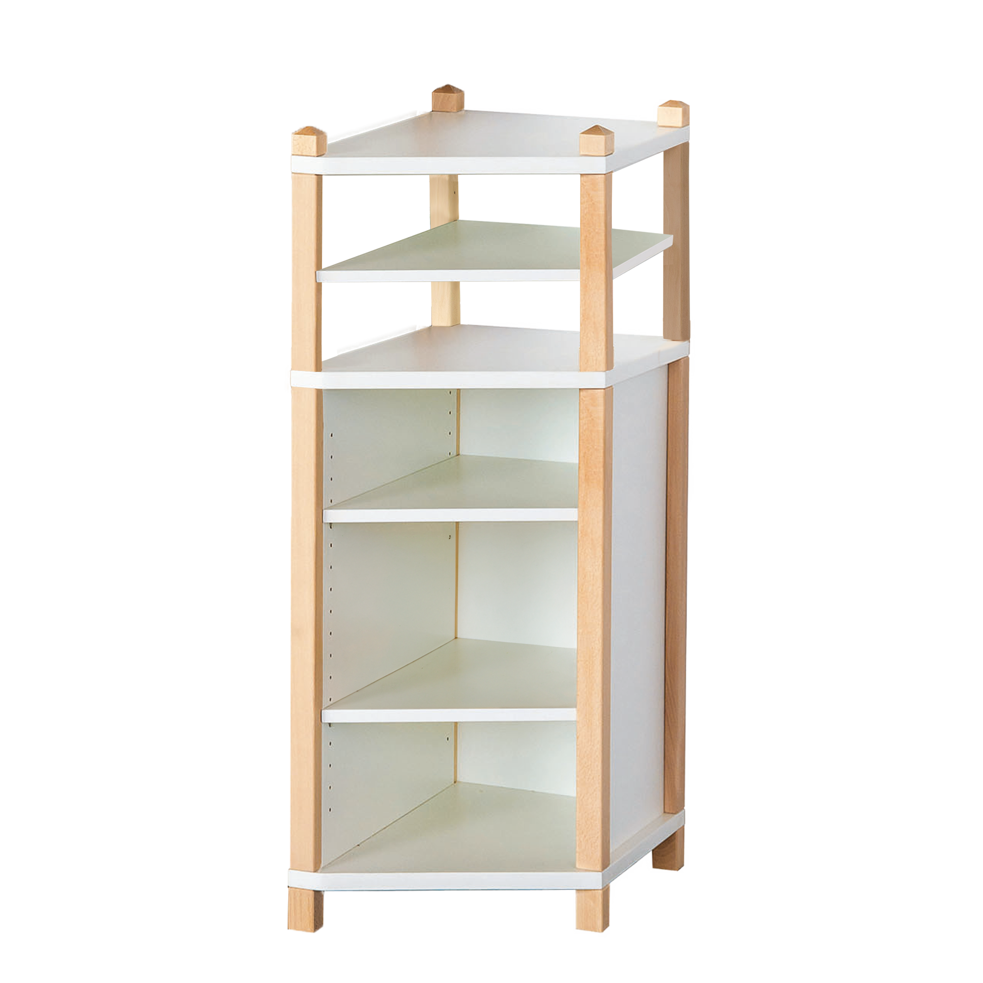 Handig als de diepte van een hangmeubel soepel moet veranderen: de plank reduceert de diepte van 60 cm naar 40 cm. Hierdoor ontstaat een succesvollere overgang tussen meubels van verschillende dieptes in een ruimtebesparende breedte van 40 cm. Net als de aangrenzende meubels heeft de plank met een hoogte van 120 cm 2 planken onderaan en een 3e plank in het open gebied erboven, die op verstelbare plankdragers liggen en aangepast kunnen worden aan compartimenten van verschillende hoogtes. De carrosseriedelen zijn gemaakt van 19 of 25 mm dikke E 1 fijne spaanplaat met een decoratieve melamineharscoating, alle randen zijn gemaakt met 2 mm ABS-veiligheidsranden. De noppen zijn gemaakt van zeer stabiel massief beukenhout en kunnen afhankelijk van uw ontwerpwensen in een gekleurde of transparante afwerking worden geleverd. Ook de inrichting van de carrosseriedelen kan worden geselecteerd. Ter compensatie wordt het noppenplankje aangeboden in 2 verschillende positioneringsvarianten: