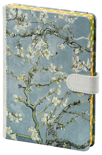 * Notitieboek met een schitterende tekening van Vincent van Gogh op de voor- en achterzijde met de bloesem van een fruitboom tegen een blauwe achtergrond. * Het boek heeft 80 grams gelinieerd zuurvrij papier en een harde kaft met afgeronde hoeken. * Het papier is beschrijfbaar met gewone pen of met vulpen. * Een magneetsluiting en een leeslint ontbreken ook niet aan dit bijzondere notitieboek waar je prima mee voor de dag kunt komen. * Afmeting: 190 x 130 x 25 mm. * Aantal pagina's: 256 stuks. * Gewicht 374 gram.
