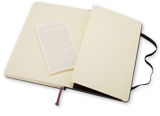 * Dit eenvoudige, maar klassieke notitieboekje is een van de best verkopende Moleskine's. * Deze betrouwbare reisgenoot is perfect voor het vastleggen van teksten, gedachten en ideeën en heeft een beklede kartonnen kaft met afgeronde hoeken, zuurvrij ivoorkleurig papier, een bladwijzer (lintje), een elastieken sluiting en een flexibel binnencompartiment waarin de geschiedenis van Moleskine zit opgeborgen.