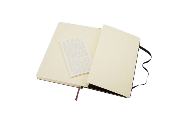 * Dit eenvoudige, maar klassieke notitieboekje is een van de best verkopende Moleskine's. * Deze betrouwbare reisgenoot is perfect voor het vastleggen van teksten, gedachten en ideeën en heeft een beklede kartonnen kaft met afgeronde hoeken, zuurvrij ivoorkleurig papier, een bladwijzer (lintje), een elastieken sluiting en een flexibel binnencompartiment waarin de geschiedenis van Moleskine zit opgeborgen.