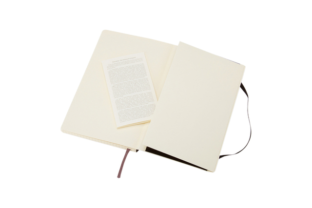 * Dit Moleskine notitieboek is een trouwe reisgezel is ideaal voor teksten, gedachten en briefjes. Het boek beschikt over een gebonden, kartonnen kaft met afgeronde hoeken, zuurvrij papier, een bladwijzer, een elastische sluiting en een uitbreidbaar binnenvak met een tekst over de geschiedenis van Moleskine. * Kenmerken: afgeronde hoeken, elastische sluiting, ivoorkleurig Moleskine-papier, bijpassend leeslint, papier: 70 gsm, zuurvrij, “In geval van verlies”-label op het schutblad, uitbreidbaar binnenvak op achterkaft. * Herbruikbare papierband heeft B-kant met extra gedrukte hulpmiddelen. * Platliggend, opent 180°. Moleskine S.p.A. maakt en verkoopt FSC & gecertificeerde producten.