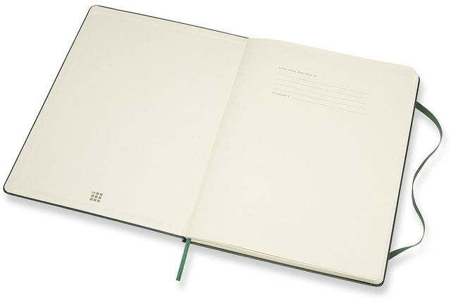 Eigenschappen "Notitieboek Moleskine XL 190x250mm blanco hard cover myrtle green"