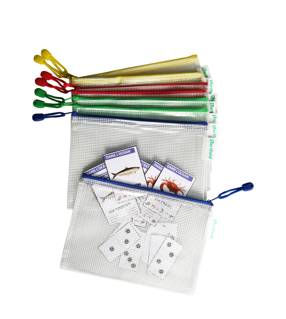 * Versterkte transparante opbergtassen van A6-formaat met ritssluiting.