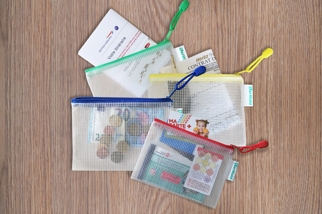 Versterkte opbergtassen met ritssluiting voor een organisatie in kleurenthema. Perfect om uw documenten of kleine voorwerpen veilig te beschermen en mee te nemen. Een stoer en betrouwbaar accessoire voor op kantoor, thuis, op school of op reis.