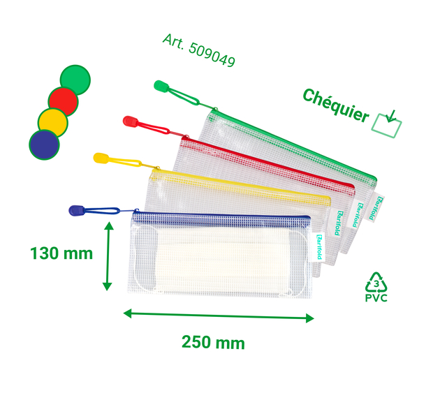 * Versterkte transparante chequeboekformaat opbergtassen met ritssluiting.