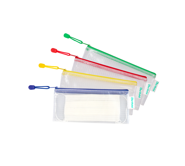 Versterkte opbergtassen met ritssluiting verkrijgbaar in 4 maten en 4 kleuren voor een organisatie in kleurenthema. Perfect om uw documenten of kleine voorwerpen veilig te beschermen en mee te nemen. Een stoer en betrouwbaar accessoire voor op kantoor, in de fabriek, thuis, op school of op reis.