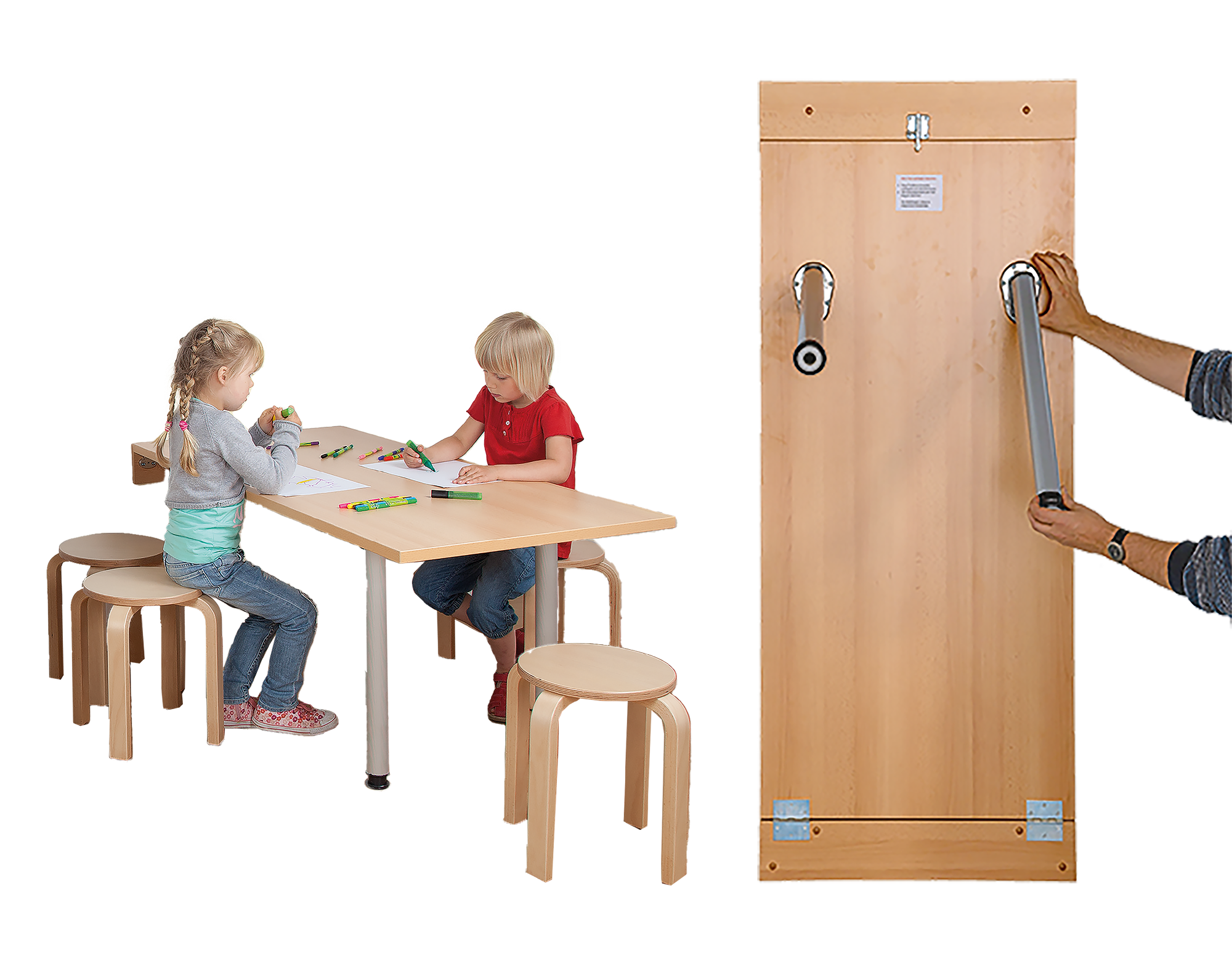 Dankzij de vouwfunctie kan de tafel bij niet-gebruik eenvoudig tegen de muur worden ingeklapt en neemt hij nauwelijks ruimte in beslag. Tafelblad van 25 mm melamineplaat inclusief 2 opklapbare tafelpoten met DM 50 mm poedercoating in RAL 9006 witaluminium. Inclusief muurbeugel en slot in opgevouwen toestand. Afmetingen B/H/D: 140x58x70 cm