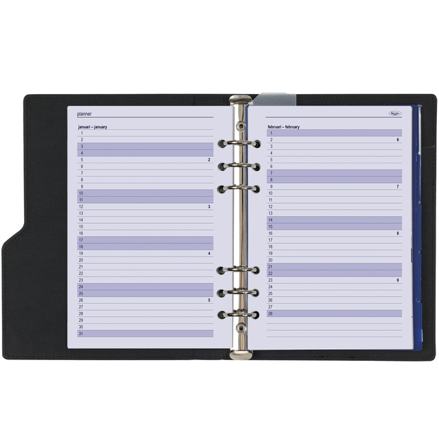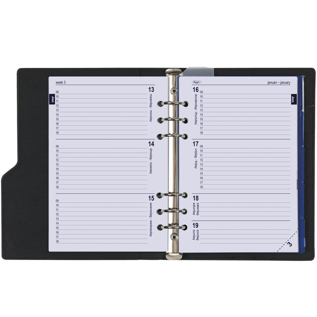 • Dankzij het stevige ringmechanisme kunt u de indeling van uw agenda gemakkelijk aanpassen aan uw persoonlijke voorkeuren en werkstijl.