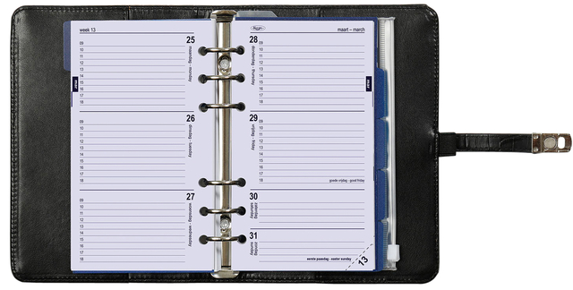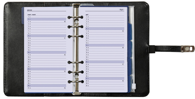 • Dankzij het stevige ringmechanisme kunt u de indeling van uw agenda gemakkelijk aanpassen aan uw persoonlijke voorkeuren en werkstijl.