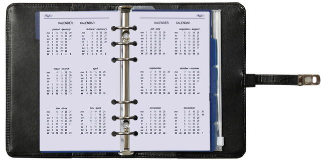 * Personal navulbare agenda heeft een meerjarige agendavulling van 1 week op twee pagina's. * Dankzij het stevige ringmechanisme kunt u de indeling van uw agenda gemakkelijk aanpassen aan uw manier van werken. * U kunt essentiële notities in uw organizer achterlaten wanneer u later een nieuwe kalendervulling toevoegt. * De organiser is de ultieme oplossing voor uw organisatiebehoeften! * Gemaakt van hoogwaardig kunstleer, is deze agenda volledig dierproefvrij, waardoor het een ethische en duurzame keuze is. * Met zijn magnetische clip houdt deze persoonlijke agenda uw notities en documenten veilig, terwijl de linker- en rechterkant voldoende ruimte bieden voor kaarten en papieren. * Bovendien is er zelfs een speciale plek voor uw pen! * Het hoogwaardige ringmechanisme is compatibel met Succes en Filofax, zodat u de pagina's soepel en gemakkelijk kunt omslaan. * Met zijn afmetingen van 195x125x40 mm is de agenda perfect om overal mee naar toe te nemen. * En met de papierafmetingen van 170x95mm heeft u genoeg ruimte om uw gedachten en ideeën op te schrijven. * Het heeft ook tabbladen, een duidelijk ritsvak, een paginascheider, notitieblokken en een adresboek, zodat u alles hebt om georganiseerd te blijven. * Naast de praktische functies bevat de kalender ruimte voor persoonlijke gegevens, kalenders en agenda's voor het huidige en het volgende jaar. * De afzonderlijke dagen vermelden ook vele religieuze, nationale en internationale feestdagen en gedenkdagen, zodat u gemakkelijk op de hoogte kunt blijven en dienovereenkomstig kunt plannen. * En als klap op de vuurpijl is de aangepaste kalender die voorheen "Standaard" heette, opgewaardeerd tot de internationale naam "Personal". * Neem geen genoegen met minder dan het beste - koop uw Navulbare Persoonlijke Agenda.