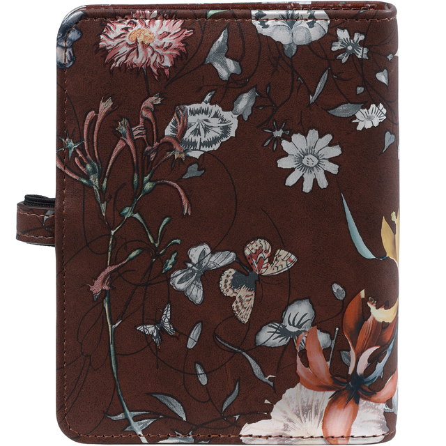 • Navulbare Pocket Agenda 1 week op 2 pagina's 2025-2026 Organiser Bloemmotief bruin.a • Pocket navulbare agenda heeft een meerjarige agendavulling van 1 week op twee pagina's. Dankzij het stevige ringmechanisme kunt u de indeling van uw agenda gemakkelijk aanpassen aan uw manier van werken. U kunt essentiële notities in uw organizer achterlaten wanneer u later een nieuwe kalendervulling toevoegt. De organiser is de ultieme oplossing voor uw organisatiebehoeften! Gemaakt van hoogwaardig kunstleer, is deze agenda volledig dierproefvrij, waardoor het een ethische en duurzame keuze is. Met zijn magnetische clip houdt deze persoonlijke agenda uw notities en documenten veilig, terwijl de linker- en rechterkant voldoende ruimte bieden voor kaarten en papieren. Bovendien is er zelfs een speciale plek voor uw pen! Het hoogwaardige ringmechanisme is compatibel met Succes en Filofax, zodat u de pagina's soepel en gemakkelijk kunt omslaan. Met zijn afmetingen van 145 x 120 x 35 mm is de agenda perfect om overal mee naar toe te nemen. En met de papierafmetingen van 125x80 mm heeft u genoeg ruimte om uw gedachten en ideeën op te schrijven. Het heeft ook tabbladen, een duidelijk ritsvak, een paginascheider, notitieblokken en een adresboek, zodat u alles hebt om georganiseerd te blijven. Naast de praktische functies bevat de kalender ruimte voor persoonlijke gegevens, kalenders en agenda's voor het huidige en het volgende jaar. De afzonderlijke dagen vermelden ook vele religieuze, nationale en internationale feestdagen en gedenkdagen, zodat u gemakkelijk op de hoogte kunt blijven en dienovereenkomstig kunt plannen.