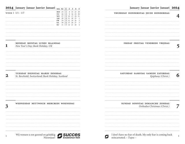 | Pagina indeling: | 7 dagen per 2 pagina's |