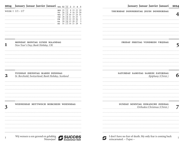 | Pagina indeling: | 7 dagen per 2 pagina's |