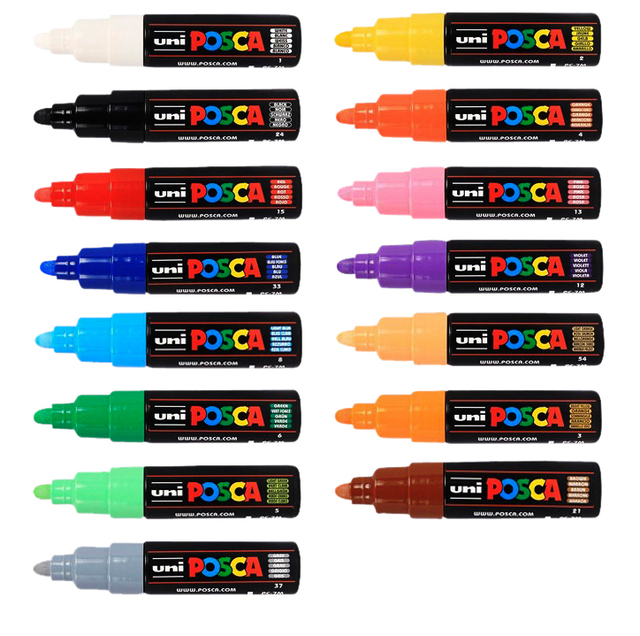 * De PC-7M is uitgerust met een brede en bijzonder praktische conische punt van 4,5-5,5mm. De PC-7M is geschikt voor kunstenaars om binnen en buiten te schilderen en te tekenen (fresco's en grote doeken), voor liefhebbers van customisatie om hun apparatuur aan te passen (fietsen, motorfietsen, surfplanken, skateboards) en voor liefhebbers en professionals om hun ramen of etalages te versieren. Hij ideaal om in te kleuren en nauwkeurige lijnen te trekken op grote schaal. Toepasbaar op papier, plastic, glas, textiel, hout, steen, porcelein enzovoorts. Perfect om unieke ontwerpen mee te maken, voor zowel binnenshuis als buitenshuis. De pigment-houdende inkt is op water basis en is reukloos in gebruik. * Geschikt voor alle ondergronden. * Hoge UV weerstand. * Dekkende ondoorzichtige kleuren. * Uitwasbaar. * Mengbaar. * Aquerelleerbaar. * Overschilderbaar. * Set à 16 kleuren.