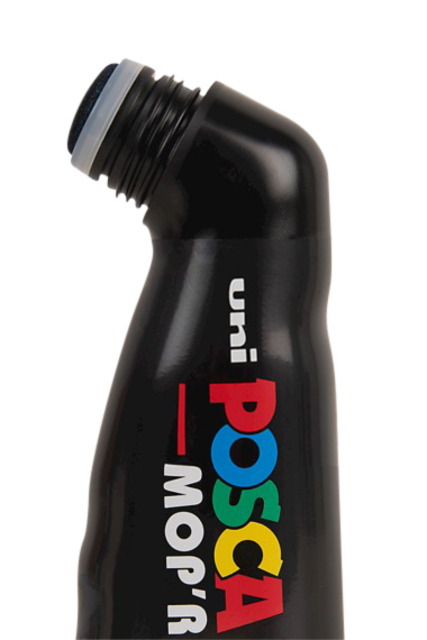 Dankzij zijn unieke ergonomische vorm, zowel horizontaal als verticaal, biedt POSCA MOP'R een totaal nieuwe greep en ervaring. Als je hem rechtop of ondersteboven houdt, kun je de effecten oneindig variëren. POSCA MOP'R vertienvoudigt de creatieve capaciteiten van alle doelgroepen: amateurs zullen enthousiast zijn over het gebruiksgemak en durven grote tekeningen en XXL-vullingen te maken, terwijl professionals en kunstenaars de kwaliteit van de coulures en de vele effecten die dit unieke gereedschap mogelijk maakt, zullen waarderen. Voor iedereen is de creatieve ervaring nieuw en uniek. De MOP'R kan rechtop en ondersteboven worden gebruikt. Het is bijzonder geschikt voor het maken van gecontroleerde druppels. De XXL-schuimrubberpunt van 3-19 mm is uiterst nauwkeurig. * Geschikt voor alle ondergronden. * Hoge UV weerstand. * Dekkende ondoorzichtige kleuren. * Uitwasbaar. * Mengbaar. * Aquerelleerbaar. * Overschilderbaar. * Verkrijgbaar in 8 kleuren. * Kleur: zwart.