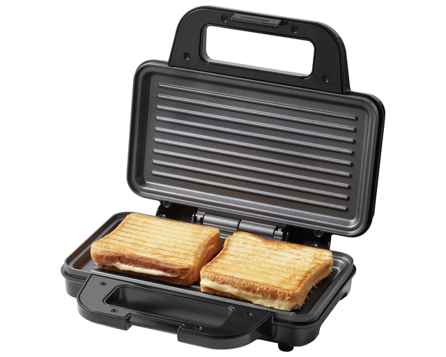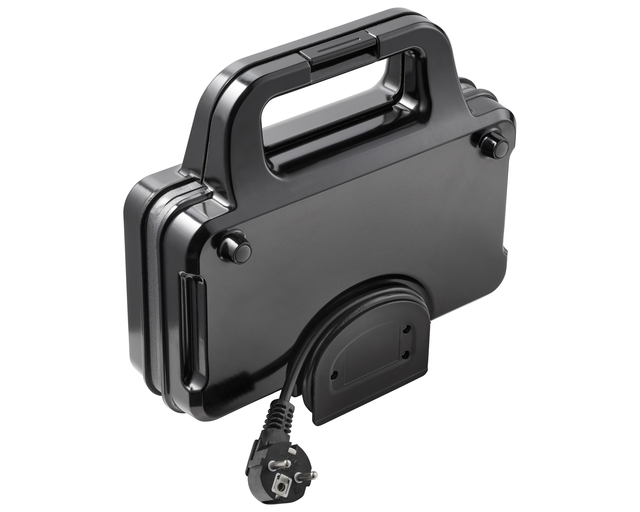 * Met deze panini grill TGP2001S van Tomado maak je de lekkerste panini's en tosti's. De grill is voorzien van handige anti-aanbak grillplaten met een afmeting van 27 x 14,5 cm. Om de panini goed te kunnen klemmen tussen de grillplaten, is de panini grill voorzien van een handgreep die je kunt vergrendelen. Na gebruik kan je de grill eenvoudig verticaal opbergen om ruimte te besparen. Om ervoor te zorgen dat het snoer ook goed intact blijft, kan je het snoer netjes aan de onderkant van het apparaat opbergen.