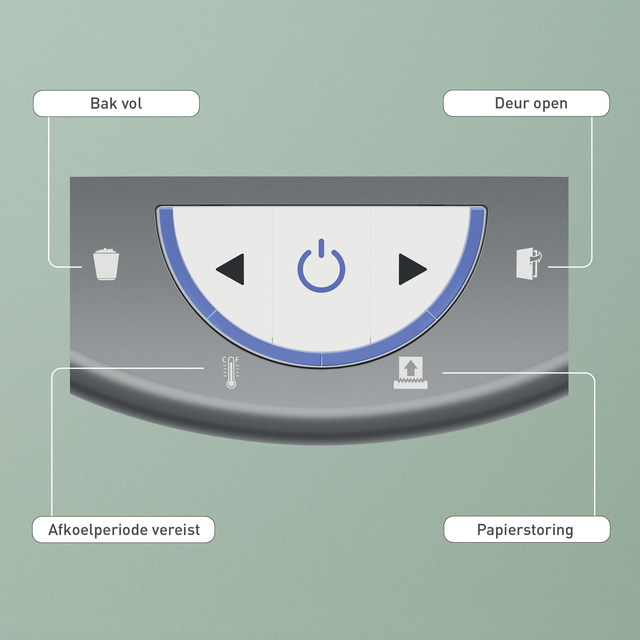 * Intuïtief LED-display met waarschuwingsaanduidingen voor volle opvangbak, deur open, oververhitting en overbelasting.