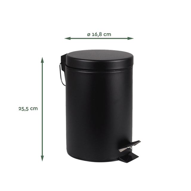 * Ronde pedaalemmer met kunststof binnenemmer. * Mat roestvrijstaal. * Leverbaar als kleine pedaalemmer van 3 liter voor op het toilet tot een grootte van 30 liter voor in de keuken. * Ø167mm, Afmetingen 195x170x270mm.