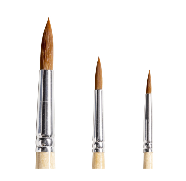 Ontdek de veelzijdigheid van schilderen met deze penseelset van Qrea, bestaande uit 3 hoogwaardige penselen met verschillende breedtes. De ronde, puntige vorm en het bruine synthetische haar bieden optimale controle, hoge vormvastheid en elasticiteit – perfect voor zowel detailwerk als bredere penseelstreken. De robuuste, natuurlijk gelakte houten stelen liggen prettig in de hand, en de stevige aluminium bussen zorgen voor een betrouwbare bevestiging van de haren. Of je nu werkt met aquarel-, plakkaat-, olie- of acrylverf, deze penselen leveren keer op keer verbluffende resultaten. Geproduceerd in Duitsland en ideaal voor elke creatieve toepassing.