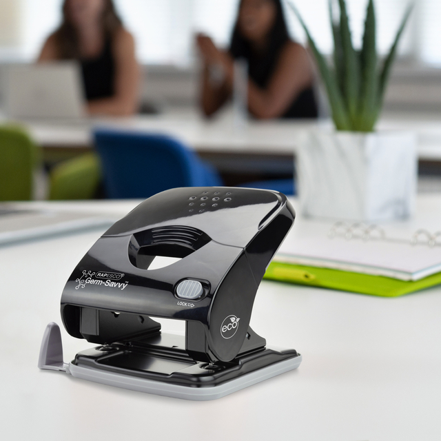 Perforator Rapesco Germ-Savvy Less Effort Eco X5-40ps antibacterieel 2-gaats zwart