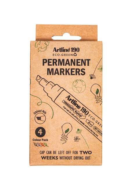 Eigenschappen "Permanent marker Artline 190 Dry Safe Eco schuin 2-5mm assorti 4 stuks"
