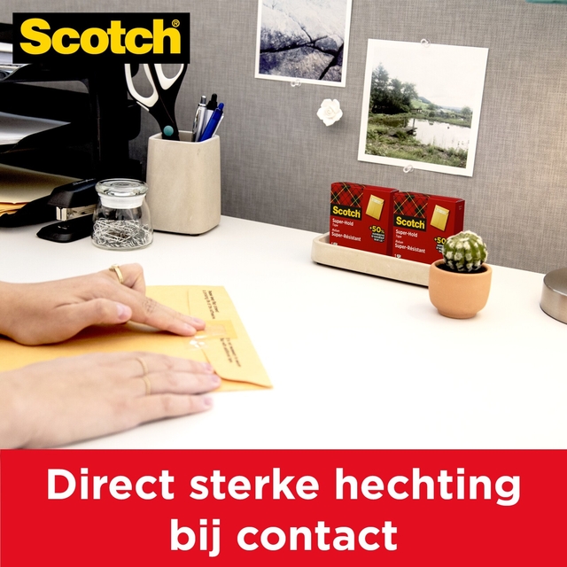 Scotch is een bekende merknaam van 3M. Scotch is ideaal bij het sluiten en repareren van pakjes of enveloppen. Of gewoon om mee te knutselen op school. Alle SCOTCH? producten kun je online snel en gemakkelijk bij KantoorArtikelen bestellen. We leveren de getoonde produkten uit voorraad aan je.