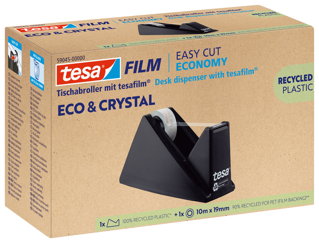 Plakbandhouder Tesa eco&crystal 59045 zwart met 1 rol tape 19mmx10m