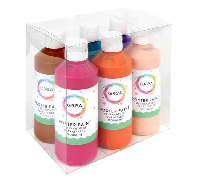 Eigenschappen "Plakkaatverf Qrea set à 6 fun kleuren 250ml"