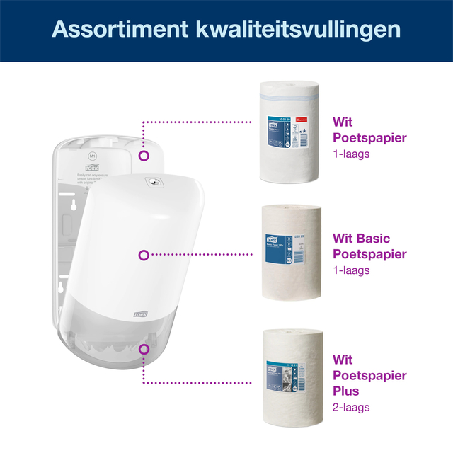 We hebben ze op voorraad en zullen ze snel aan je kunnen leveren. Tork biedt vaak een totaaloplossing, je kunt houders en vullingen hand in hand bestellen. Tork levert wereldwijd aan gebruikers in de sectoren: gezondheidszorg, horeca, industrie en office. Door de jarenlange ervaring en expertise op het gebied van hygi?ne en duurzaamheid, is Tork marktleider in verschillende sectoren. Tork is onderdeel van het SCA merkportfolio.