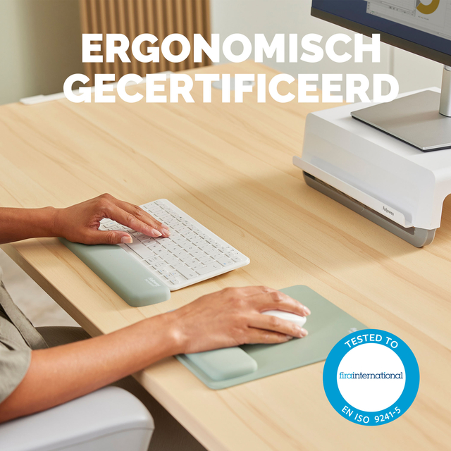 De HEX Cushion Technology™, waarvoor patent is aangevraagd, zorgt voor gelijkmatige ondersteuning en comfort tijdens het typen. De zachte, stofwerende polssteun heeft een mooie afwerking en zorgt voor een soepele typervaring. De ingebouwde Microban®-bescherming helpt bacteriën tegen te gaan en werkt 24/7 voor extra bescherming van het product. Gemaakt voor compacte (TKL) toetsenborden. 100% recyclebaar via het terugnameprogramma van Fellowes. Gemaakt om lang mee te gaan met 5 jaar beperkte garantie. Getest door FIRA International Ltd om te voldoen aan de ergonomische eisen van de Europese gezondheids- en veiligheidswetgeving: EN ISO 9241-5.