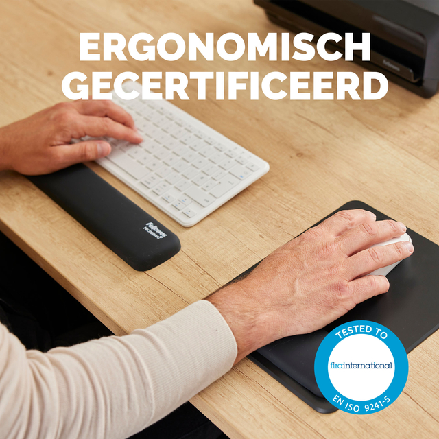 De HEX Cushion Technology™, waarvoor patent is aangevraagd, zorgt voor gelijkmatige ondersteuning en comfort tijdens het typen. De zachte, stofwerende polssteun heeft een mooie afwerking en zorgt voor een soepele typervaring. De ingebouwde Microban ®-bescherming helpt bacteriën tegen te gaan en werkt 24/7 voor extra bescherming van het product. Gemaakt voor compacte (TKL) toetsenborden. 100% recyclebaar via het terugnameprogramma van Fellowes. Gemaakt om lang mee te gaan met 5 jaar beperkte garantie. Getest door FIRA International Ltd om te voldoen aan de ergonomische eisen van de Europese gezondheids- en veiligheidswetgeving: EN ISO 9241-5.