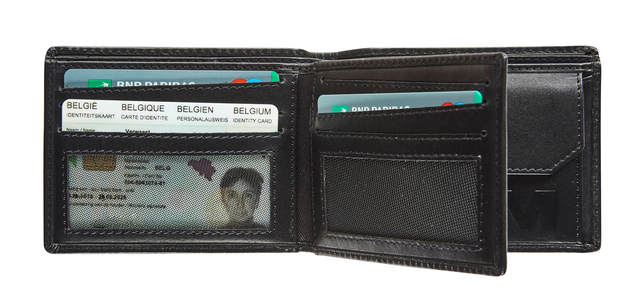 Eigenschappen "Portemonee Maverick All Black met kleingeldvak RFID leer zwart"