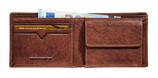 Eigenschappen "Portemonee Maverick Rough Gear compact met kleingeldvak RFID leer bruin"
