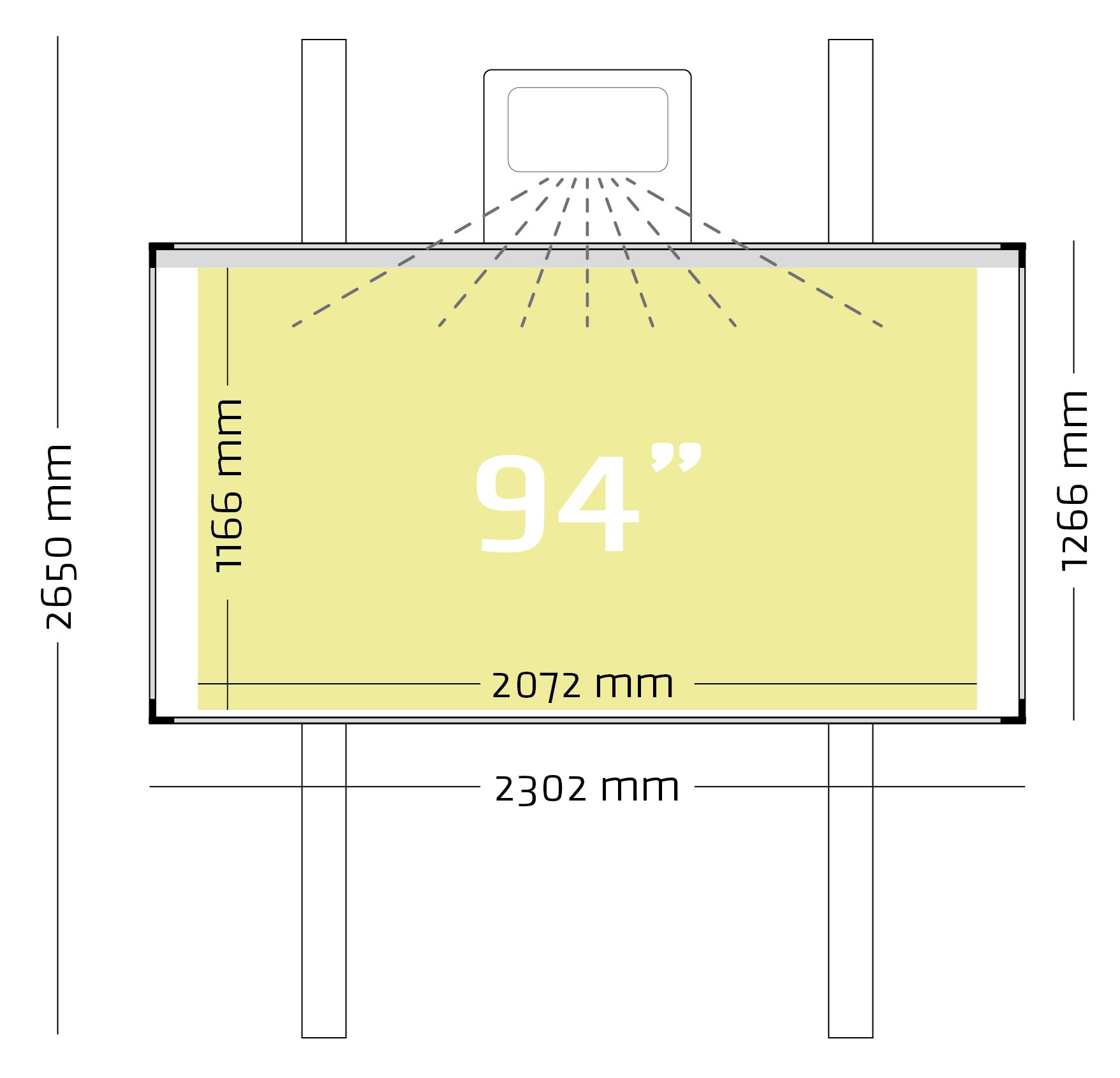 Projectiebord (16:9) ExtraFlat op kolommen, Low Gloss, finger touch - 126x231 cm, 94"