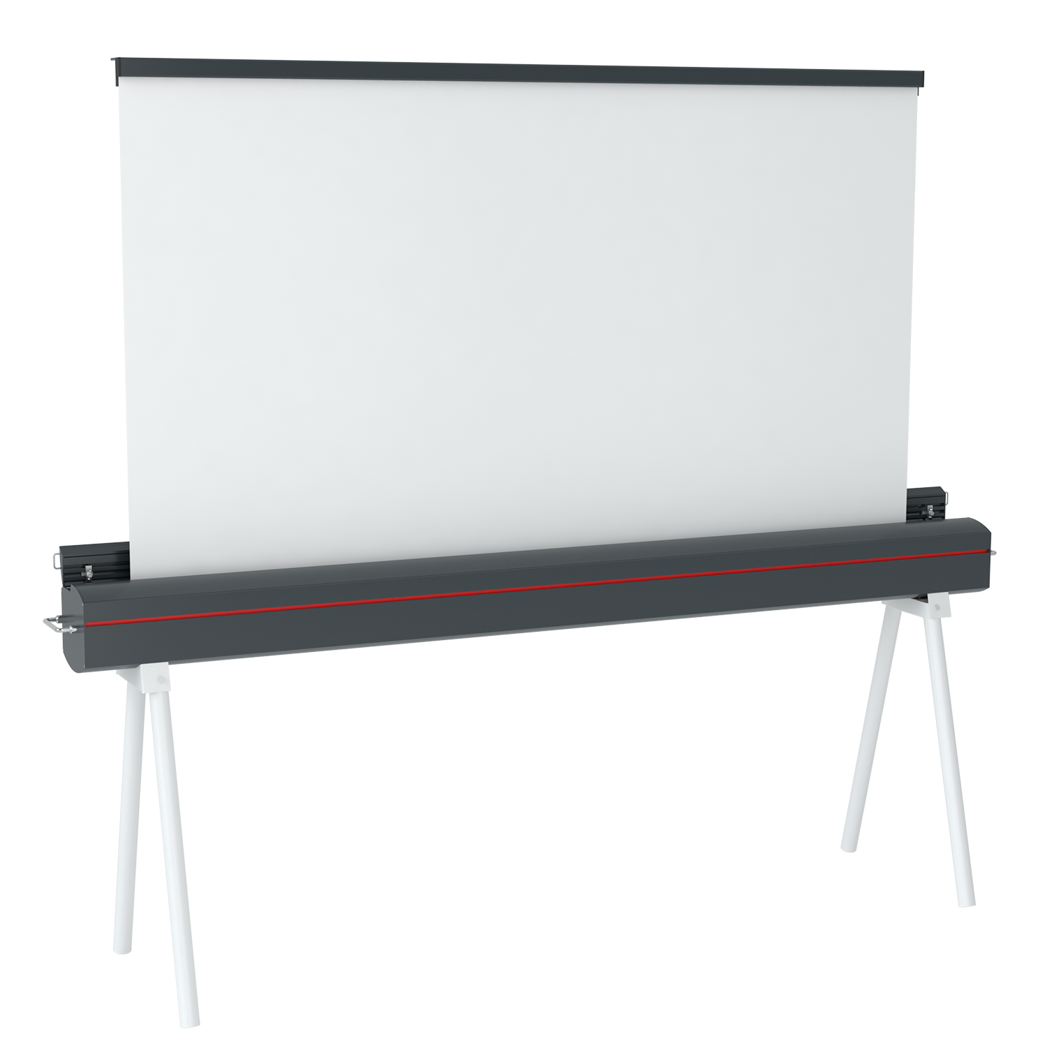 Mobiele projectieschermen zijn de ideale oplossing om snel en eenvoudig een presentatie op te zetten. Ideaal op beurzen, in kerken, conferentie- of trainingsruimtes. De Contour is ideaal voor universeel, transporteerbaar gebruik. Door de draagbeugels aan de voorzijde van de behuizing en de inklapbare stelvoeten onder de behuizing is hij altijd en overal klaar voor gebruik. De standaardkleur van de aluminium behuizing (B 19 x H 19 cm) en de stelpoten is RAL 9016 verkeerswit. Andere kleuren zijn optioneel verkrijgbaar voor de behuizing volgens RAL Classic, neem hiervoor contact met ons op! U kunt het mobiele projectiescherm in verschillende formaten en uitvoeringen krijgen. De Countour kan worden geleverd met een onderhoudsvrije motoraandrijving of met een krukmechanisme. De Contour is zonder montagewerk direct te gebruiken. Dankzij de vier uitklapbare stelvoeten onder de behuizing is het projectiescherm flexibel en altijd inzetbaar.