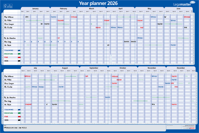 Projectplanner 2026 Legamaster 90x60cm horizontaal gelamineerd Engelstalig