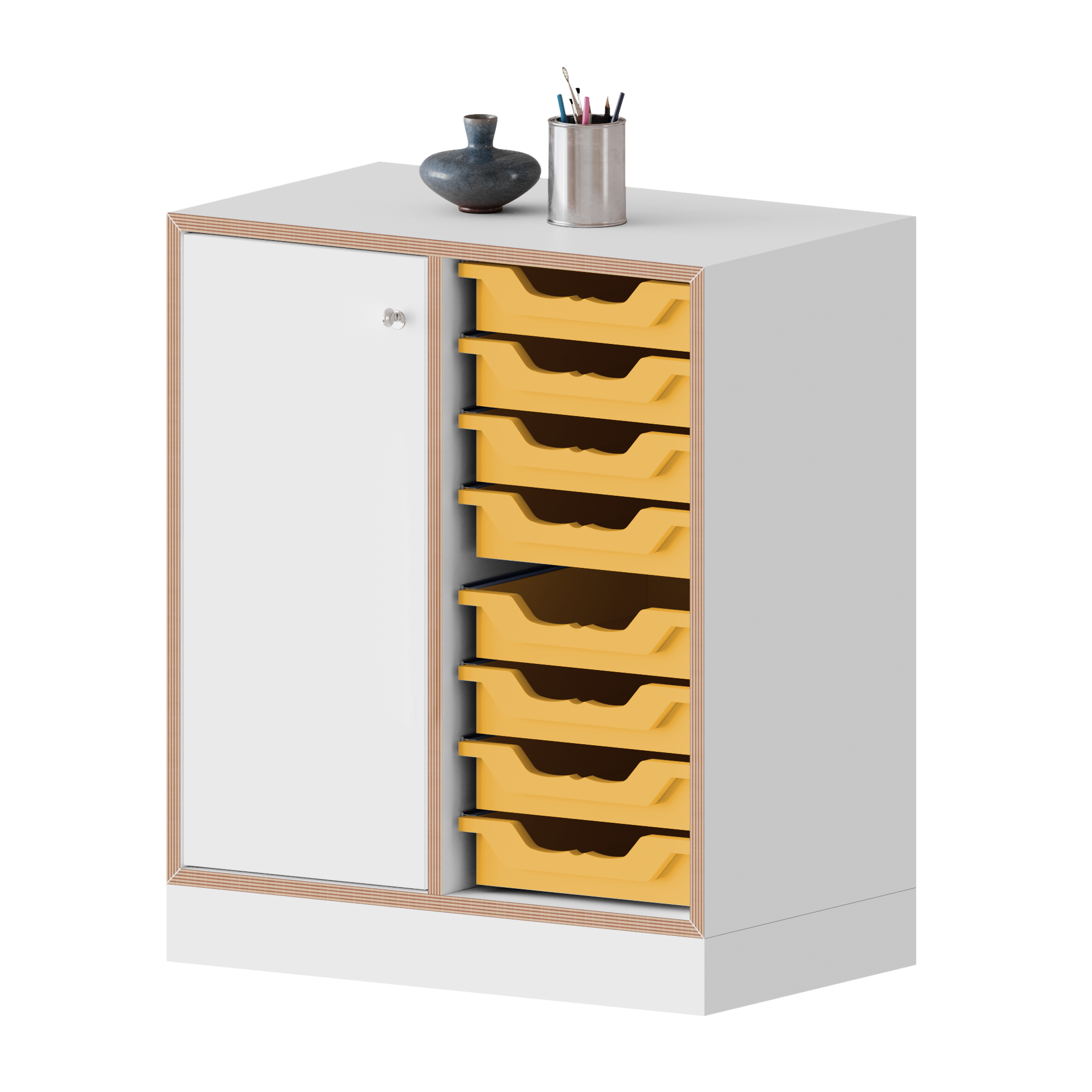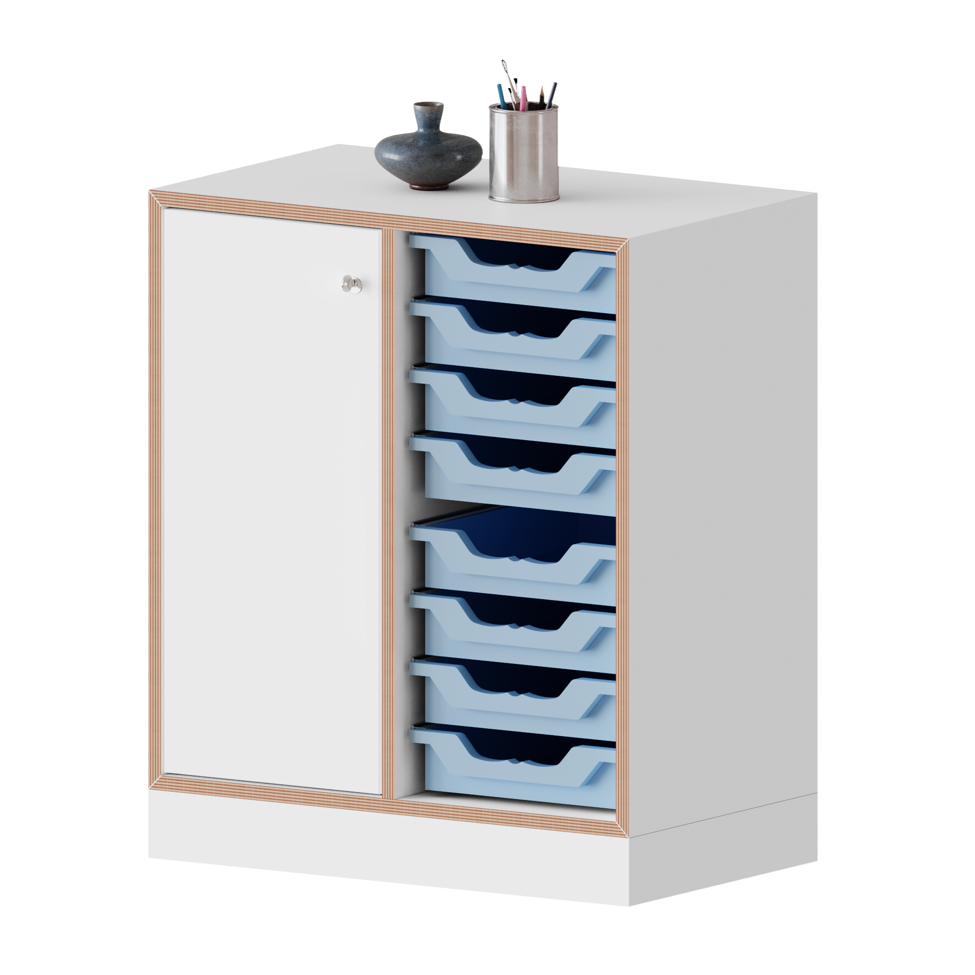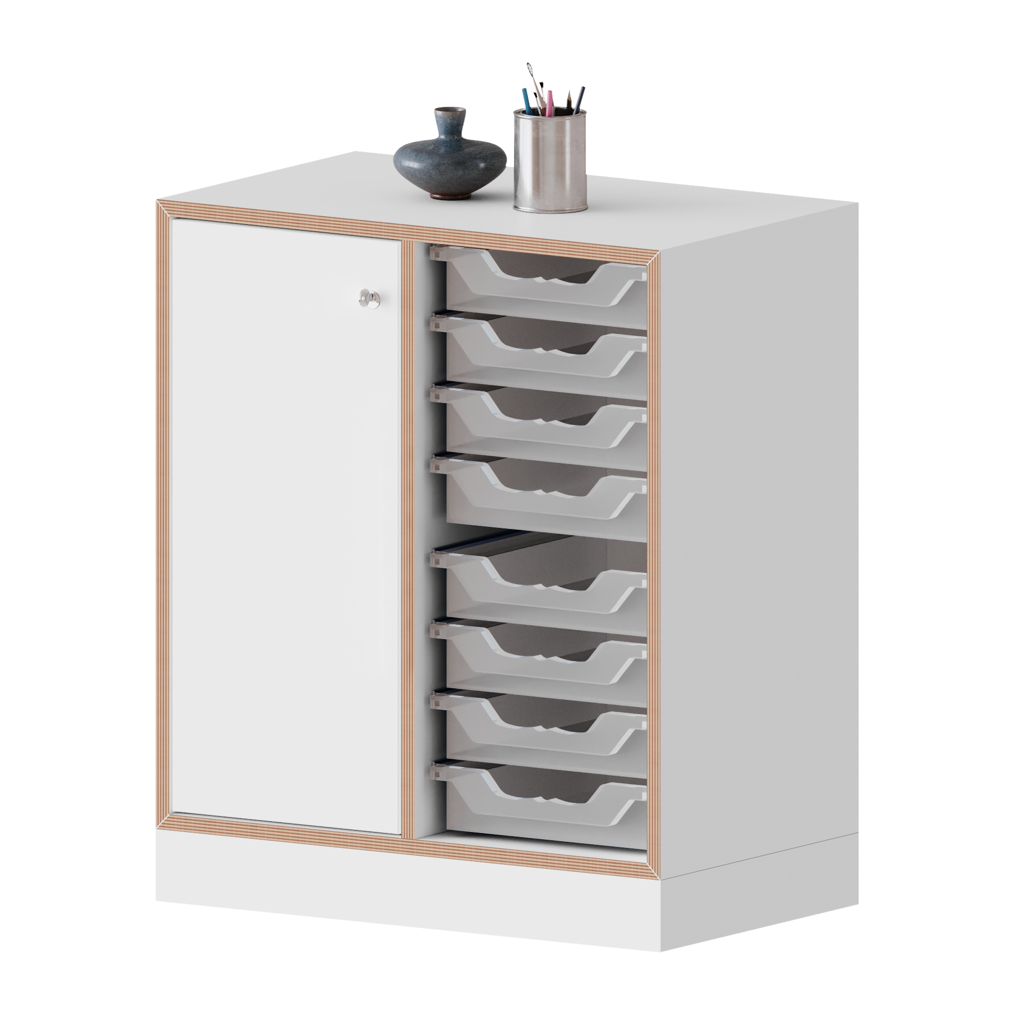qickly® kast, 2 ordnerhoogtes, 1 deur links met slot, 8 kleine Ergo Tray bakken - B/H/D: 70,1x74,3x42,6 cm