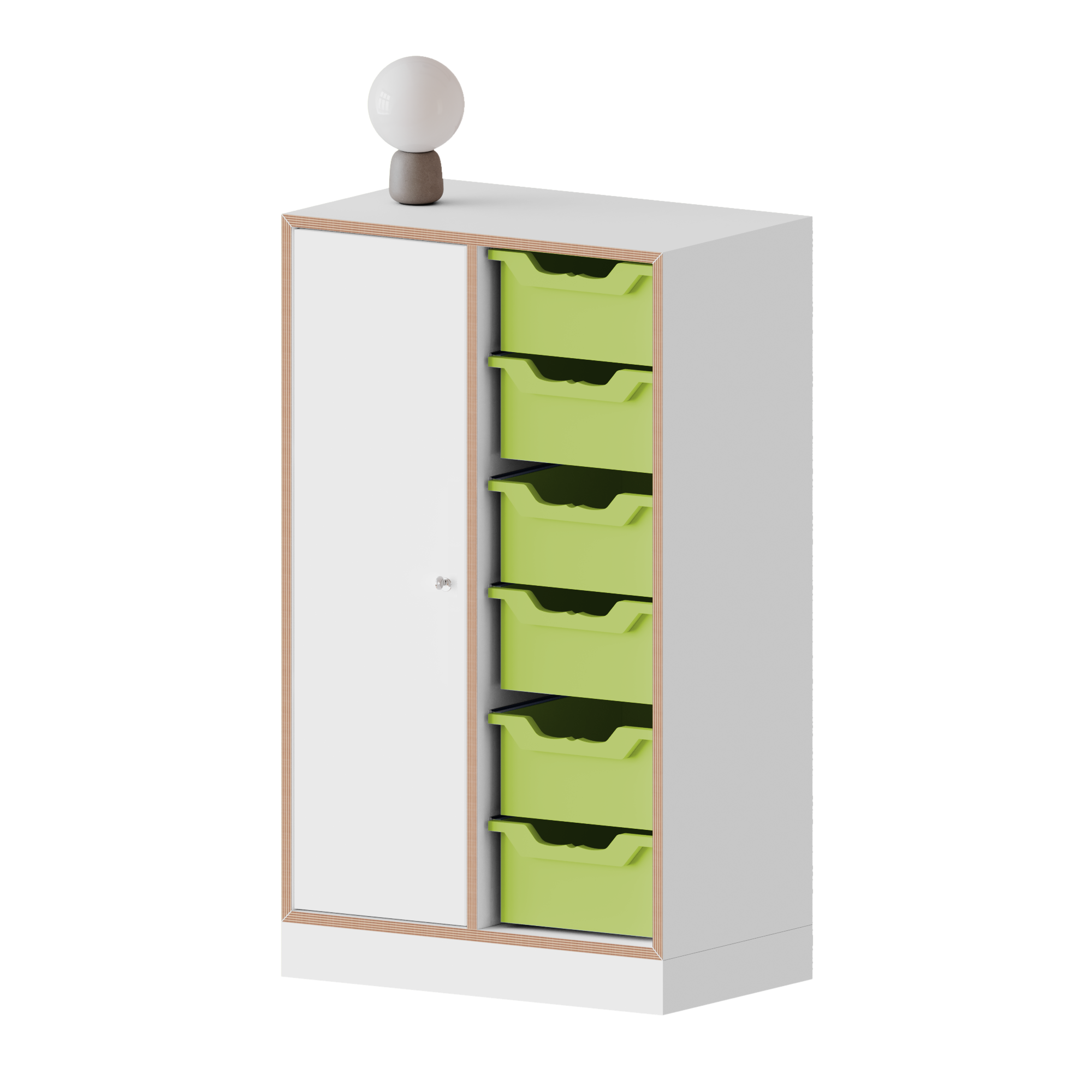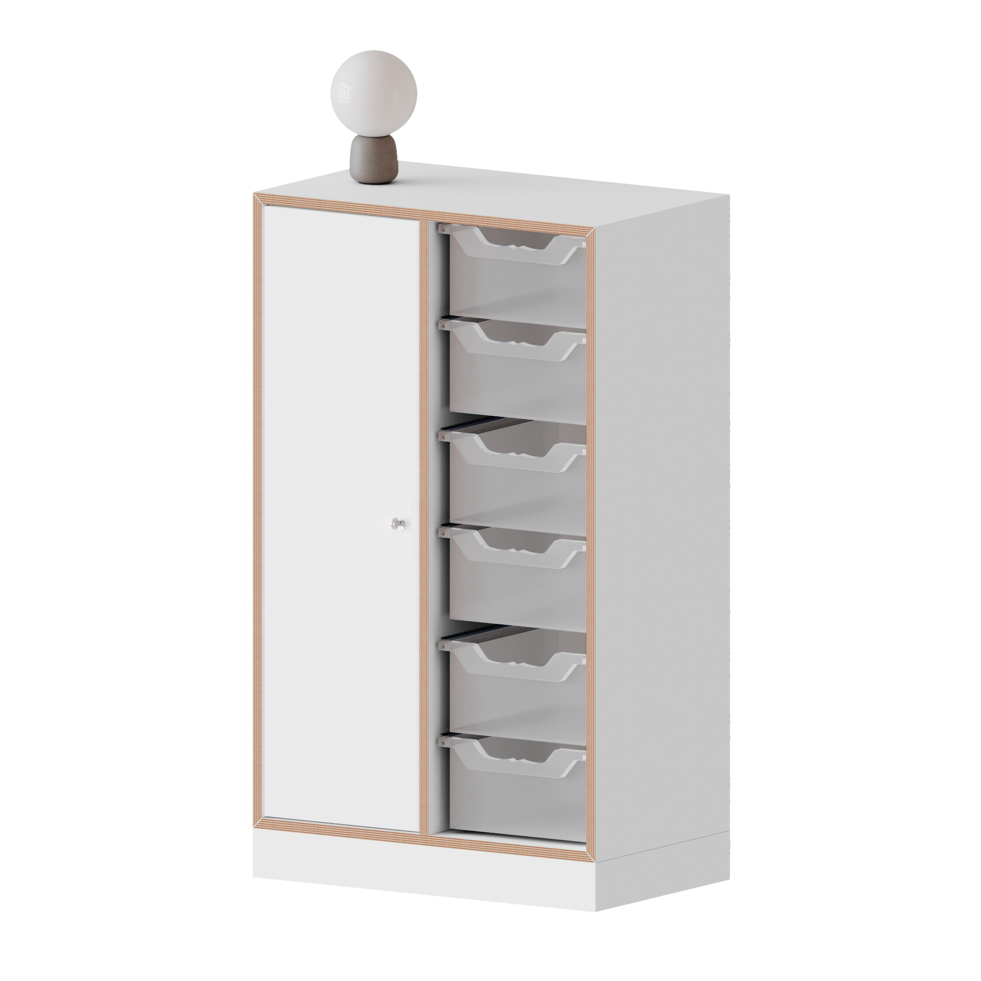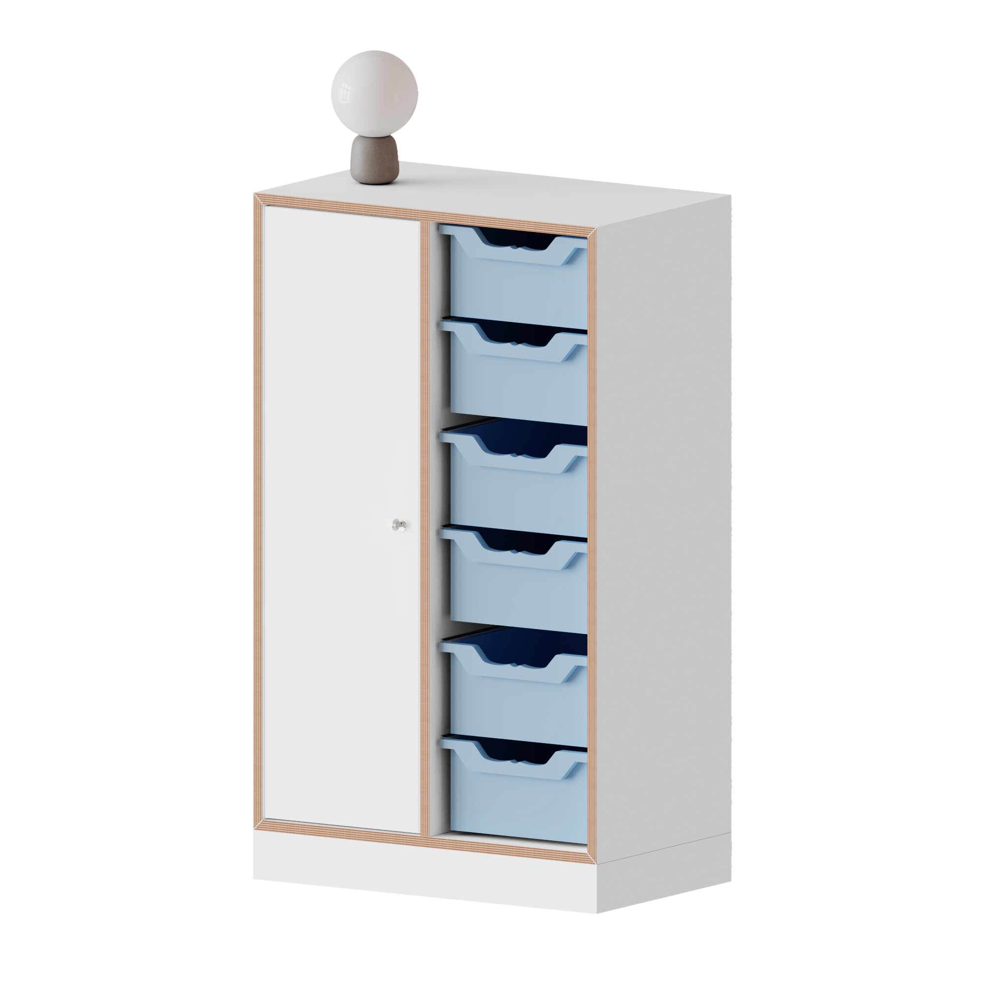 qickly® kast, 3 ordnerhoogtes, 1 deur met slot, 6 grote Ergo Tray bakken - B/H/D: 70,1x110,5x42,6 cm